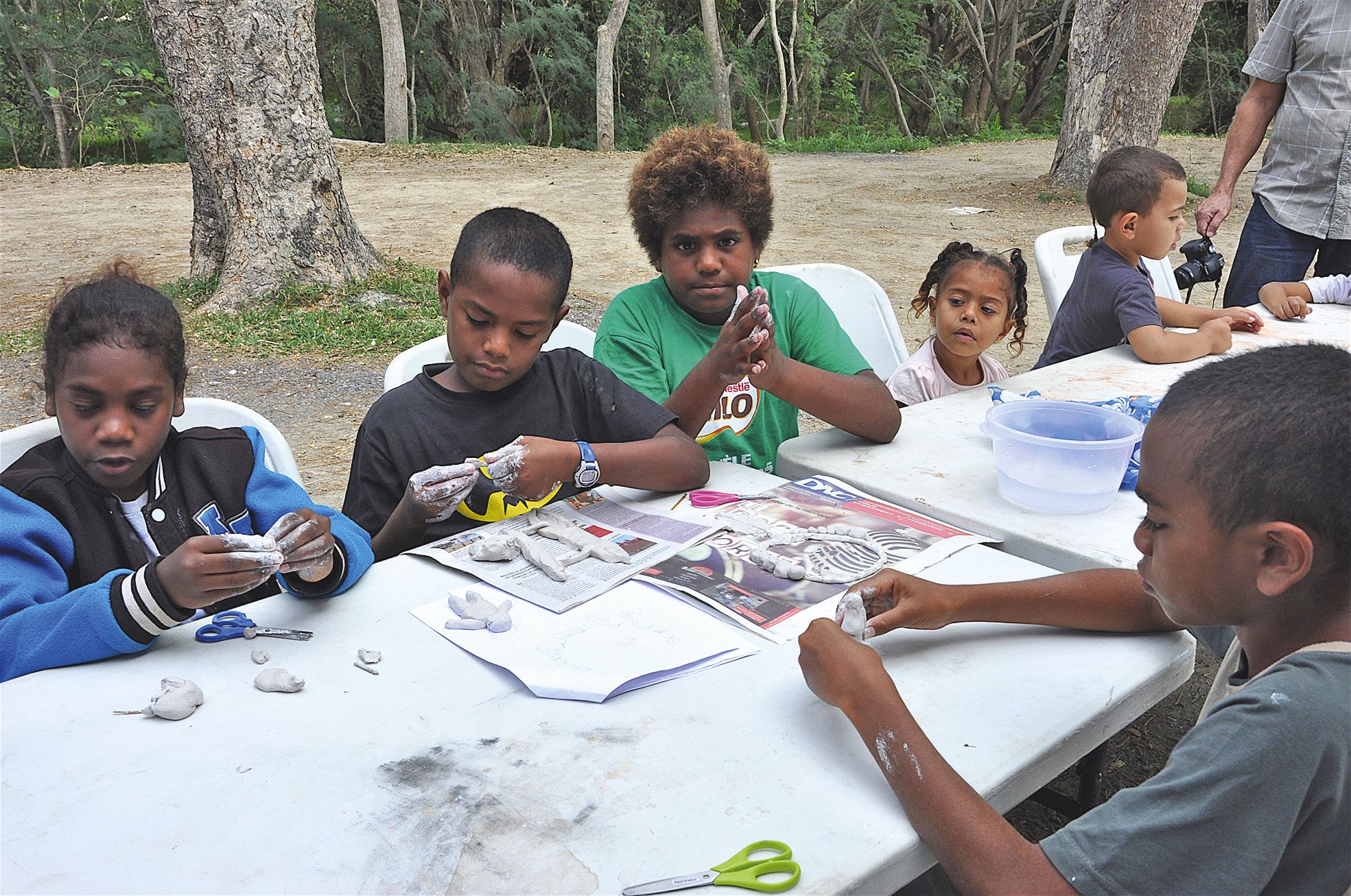 2 > Les enfants ont réalisé les différents personnages et les équipements en pâte à modeler, sous les conseils d’Angelo (Hienghène), artiste potier, intervenant auprès de l’association Graphynord.