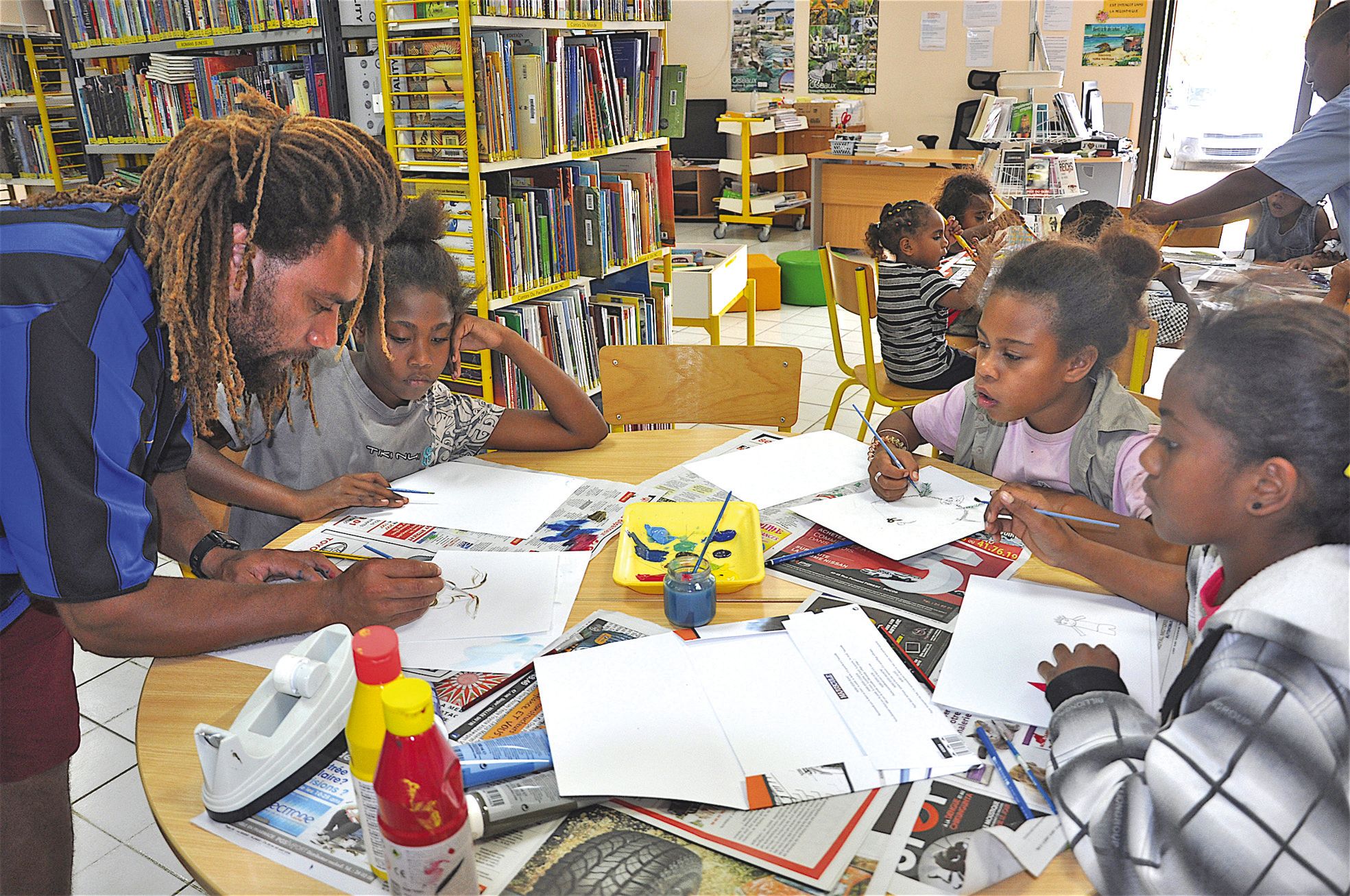3 > Adilio, artiste, a proposé aux enfants de laisser libre cours à leur imagination afin de réaliser des dessins sur le thème de leur conte, et qui pourraient orienter les décors. Les élèves réaliseront leur maquette et l’enverront à la médiathèque du Nord pour la sélection du jury. Celle retenue sera éditée sous forme d’albums jeunesse et d’outils pédagogiques, dans toutes les langues kanak.