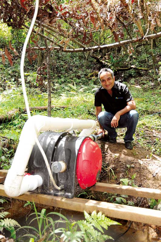 Boualem Benkoussa, gérant de la société Ambi, a installé un système qui permet aux trois maisons de la famille Wamytan d'être autosuffisantes en énergie. Cette turbine placée sur un creek prend le relais des panneaux solaires en cas de mauvais temps.