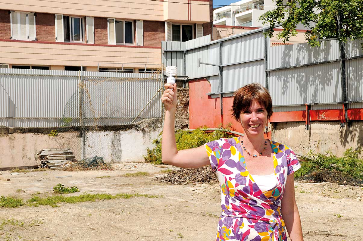 Savina Creugnet pose sur le site du futur hôtel Gondwana Nouméa, labellisé Haute Qualité Environnementale. C'est le premier du genre dans tout l'Outre-Mer.