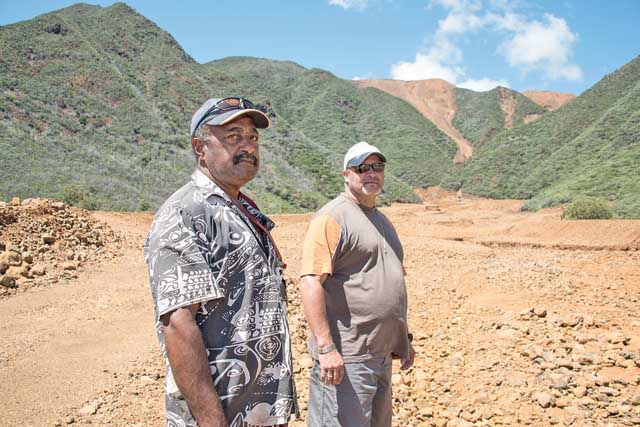 1 > Derrière Jean-Guy M’Boueri, président du « collectif des populations de Thio », et Miguel Auvray, premier vice-président, un site dénommé « la décharge de Wellington », « un exemple type. La mer est juste en bas, alors qu’il y aurait dû avoir des ouvrages d’art en haut » jugent ces cadres de l’association.