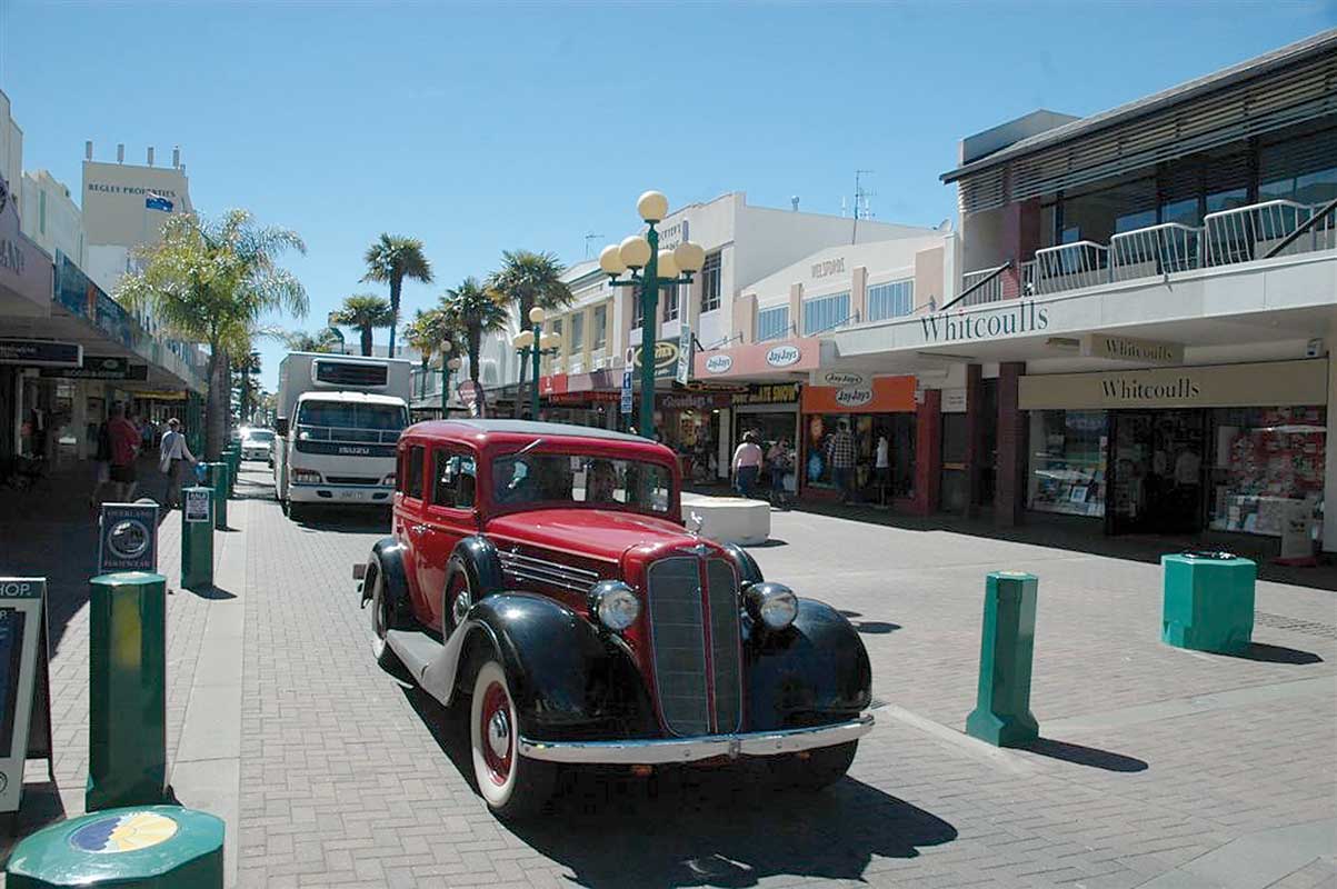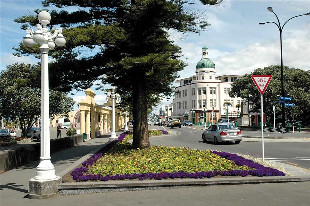 Napier, la cité de l'Art déco ; le 11/14/2011 - 16:49Emerson Street est une large rue piétonne, jalonnée de bornes et de bancs octogonaux décorés de motifs locaux, allant du bestiaire kiwi aux représentations de motifs polynésiens.Photos : Pierre Larue et Michel Scolan