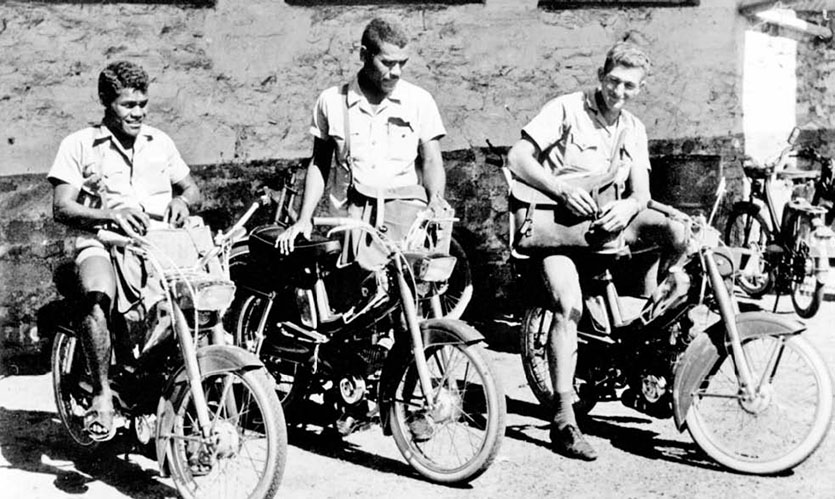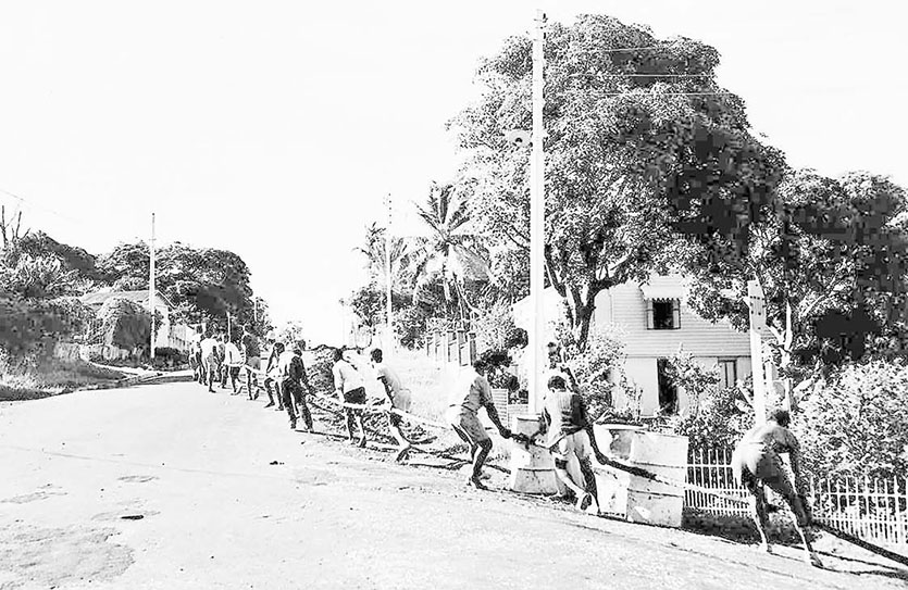 La création de l’office lance une période de grands travaux : en 1959, un câble sous-marin est mis en place pour relier le central Galliéni au centre émetteur-récepteur de l’île Nou (à gauche). La même année, des ouvriers travaillent à l’enfouissement d’un câble téléphonique à l’Orphelinat (à droite).