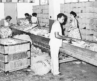 En 1960, l’équipe chargée du tri postal à la recette principale (à l’angle de Galliéni et Jean-Jaurès).