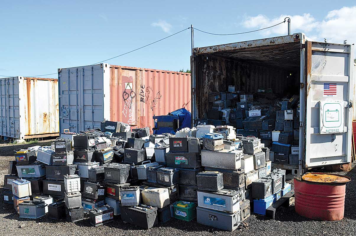 Nouvelle gestion des déchets dans le Grand Nord ; le 09/22/2011 - 18:11Les batteries sont provisoirement stockées au CESD du SIVM Nord avant d'être récupérées par des sociétés privées de Nouméa ou du Sud.Photo : Ivan Cotignola