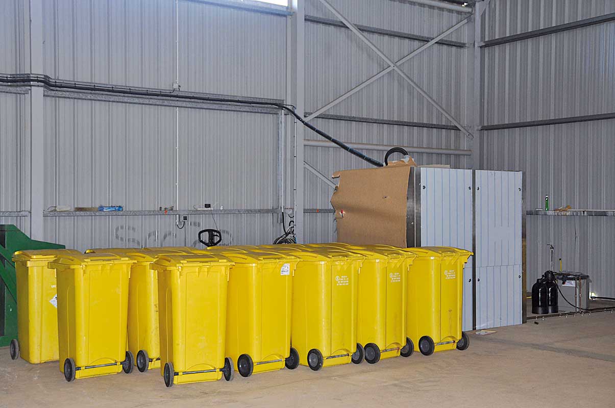 Nouvelle gestion des déchets dans le Grand Nord ; le 09/22/2011 - 18:09Les déchets alimentaires, mis dans les sacs verts, sont déversés dans le casier n°1 où ils sont compactés. Ce dernier est en service depuis le 1er avril 2005.Photo : Ivan Cotignola