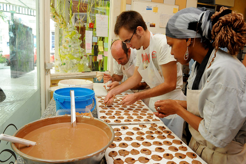 Patrick et sa chocolaterie ; le 12/21/2011 - 23:10Mardi, à quatre jours du réveillon de Noël, le magasin ne désemplissait pas, mais pas de panique dans l'atelier, beaucoup de chocolats sont préparés à l'avance.Photo : Jacquotte Samperez