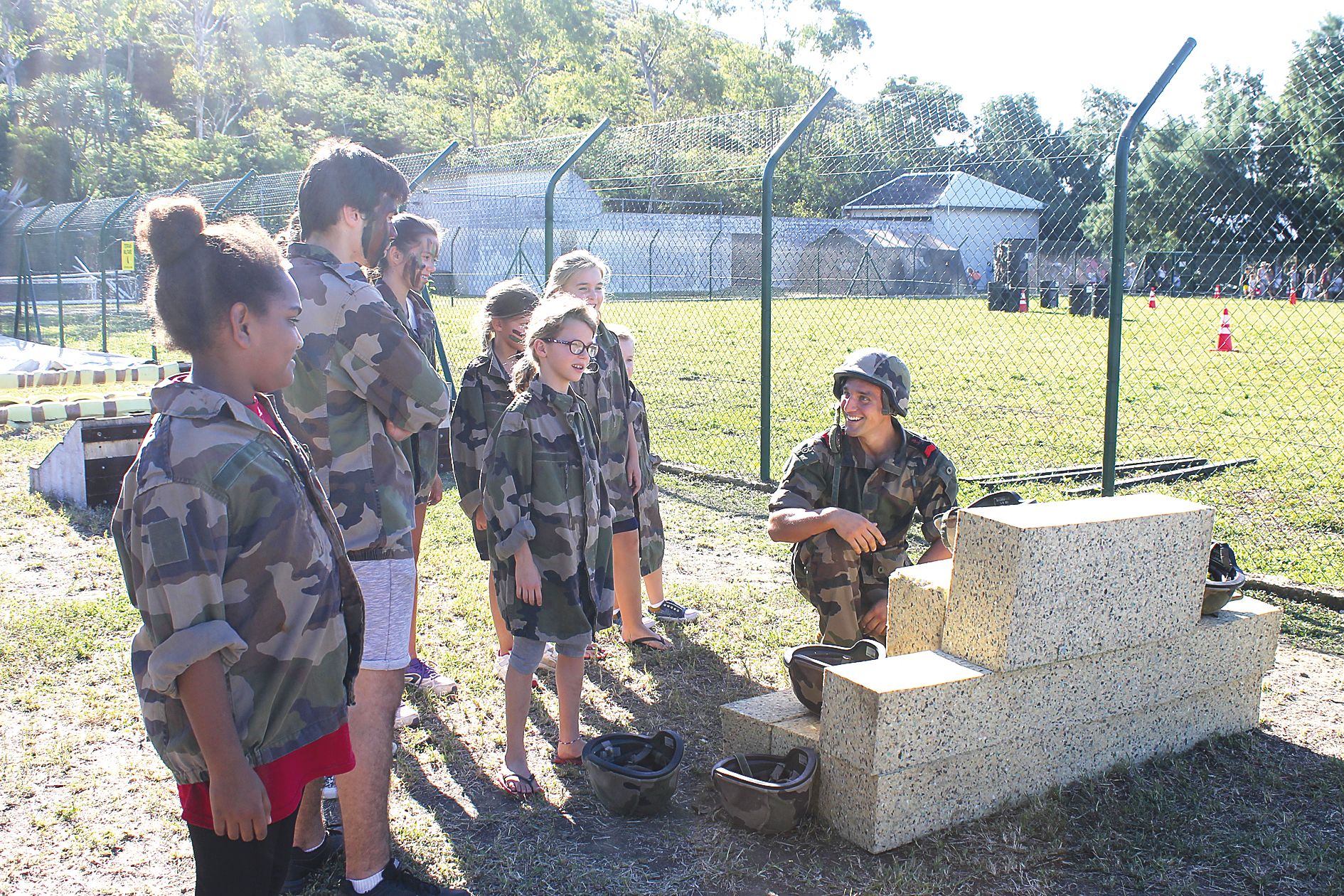 Le parcours du combattant a attiré de nombreux petits soldats, filles et garçons, qui étaient encadrés par des fusillers marins pour ramper, courir, tester leur équilibre, immobiliser des « malfaiteurs » dûment protégés de leurs coups ou lancer des « grenades ».