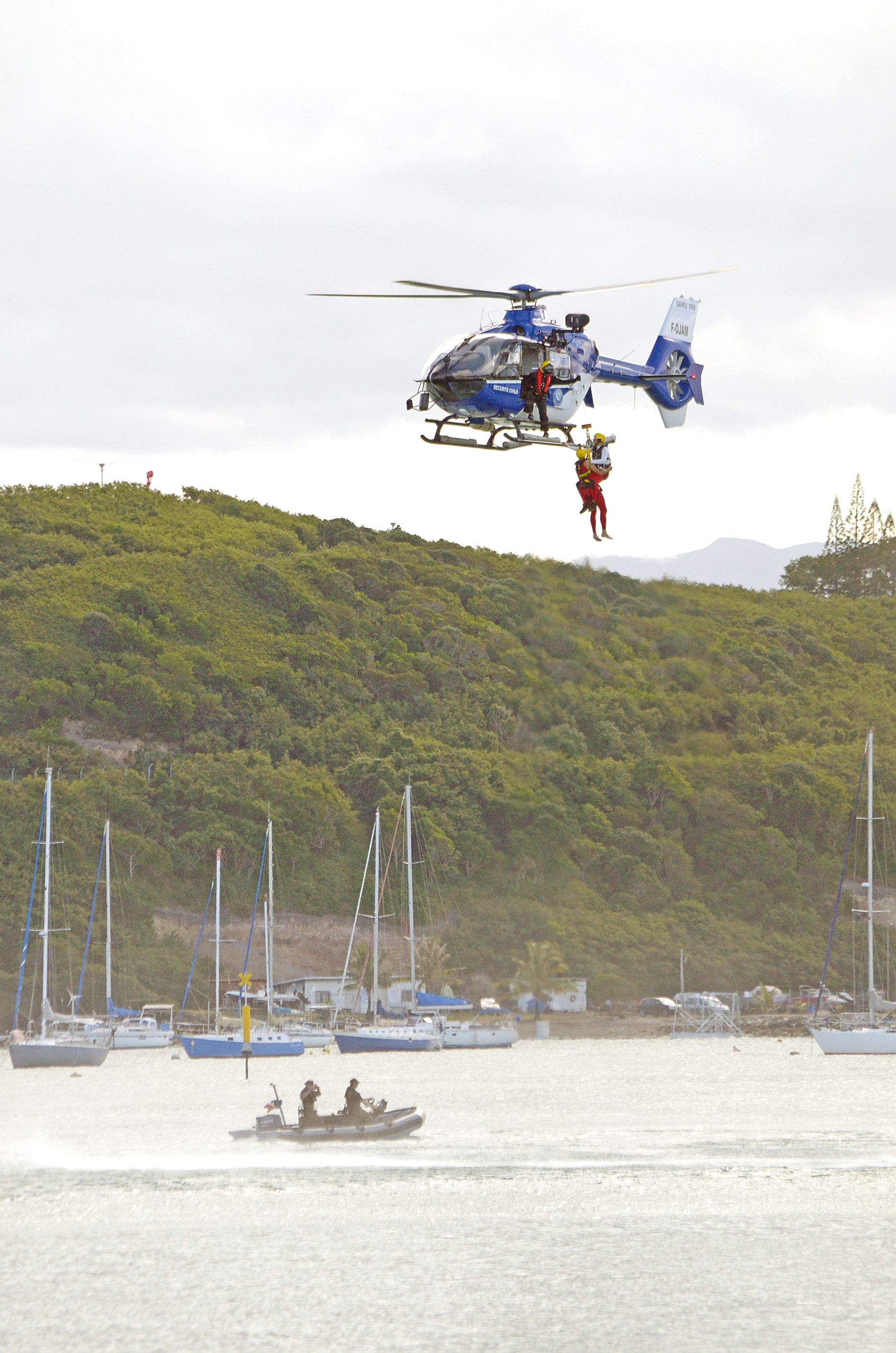 Deux démonstrations nautiques ont eu lieu sur le plan d’eau, avec sauvetage en mer, exercice de dépollution et, pour la première fois, un hélitreuillage.