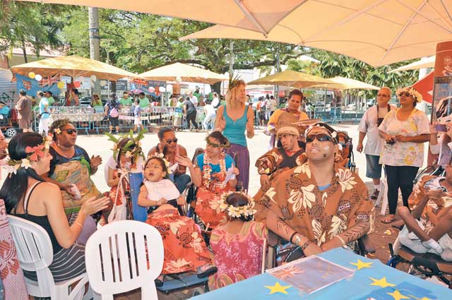 Pour la douzième édition de sa Journée extraordinaire, le Centre communal d’action sociale de Nouméa a invité les associations œuvrant pour le handicap à voyager au cœur des cultures du Pacifique. Une manière originale de sensibiliser les valides au handicap. Rencontre avec quelques-unes des quinze structures présentes hieraprès-midi sur la place de la Marne. Texte et photos : Sophie Mendes