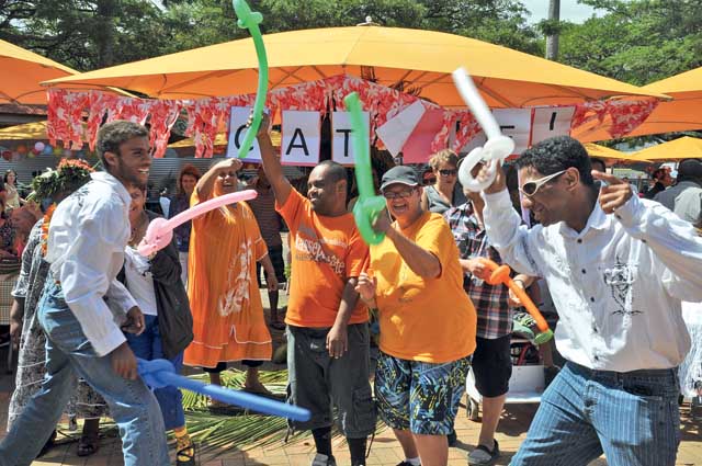 Les révoltés du Bounty du Centre d’aide par le travail de Tina-sur-Mer ont surpris petits et grands avec un spectacle de rue animé par des combats d’épées et des danses tahitiennes.