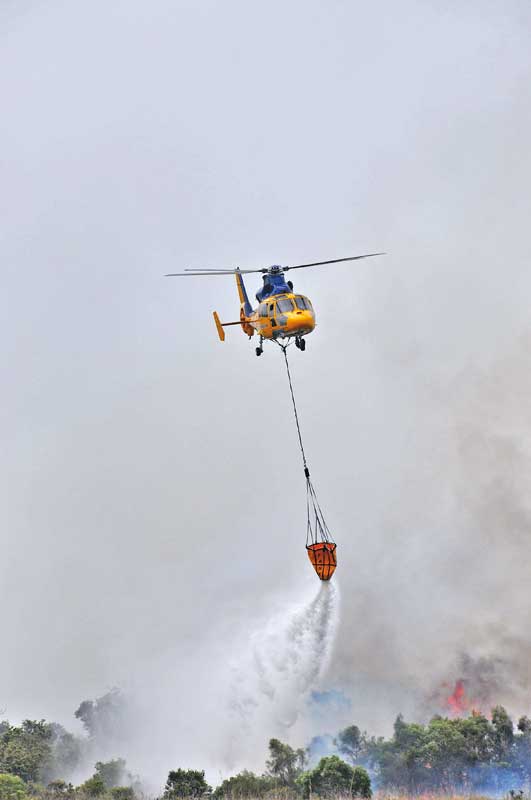 Plus de 100 hectares détruits par les flammes ; le 10/20/2011 - 23:52Les flammes, poussées par de violentes rafales, ont évolué rapidement, pendant que les sapeurs-pompiers traitaient les lisières. Les hélicos ont effectué soixante-six largages sur les zones à risques.