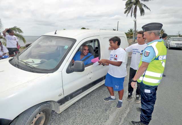 Par groupe de cinq, les collégiens ont participé, avec les gendarmeries de Wé et de Xépénéhé, aux contrôles des automobilistes. Les jeunes les ont interpellés sur le thème de la sécurité routière et ont distribué des prospectus comportant en français et en drehu dix règles essentielles.