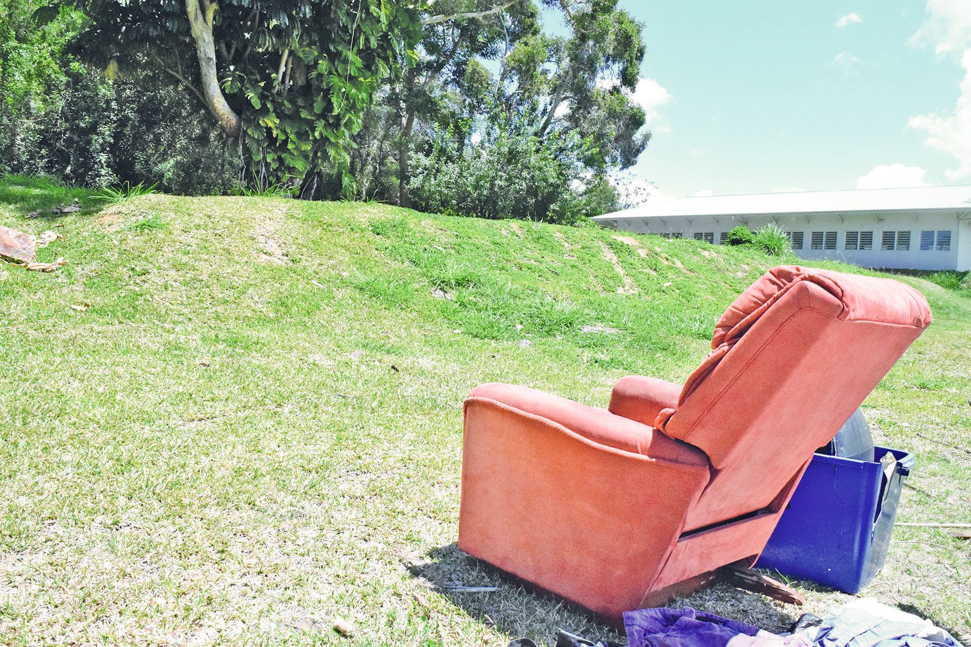 1 > À Dumbéa, la collecte des encombrants se fait à la demande. Plaine de Koé, dans une maison, c’était probablement le ménage de printemps. Ce pauvre clic-clac a nonchalamment été déposé sur le bord de la route. Quelques minutes plus tard, des voisins tournaient déjà autour. Voilà comment le sofa, usé mais toujours douillet, a trouvé une nouvelle famille d’accueil.