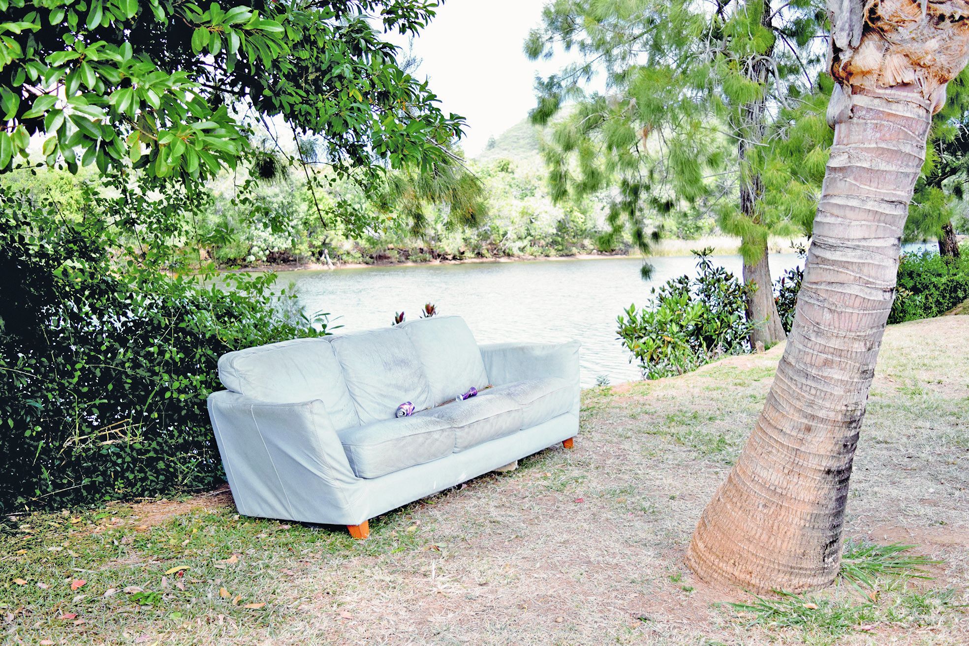 4 > Parfois, les canapés ne sont pas voués à finir à la déchèterie. En fin de vie, ils peuvent encore permettre de profiter d’un moment en plein air. Il y a tout juste un an, des amateurs de canapés en liberté déposaient celui-ci au parc Fayard, à l’ombre des cocotiers, à la fraîcheur de la rivière.