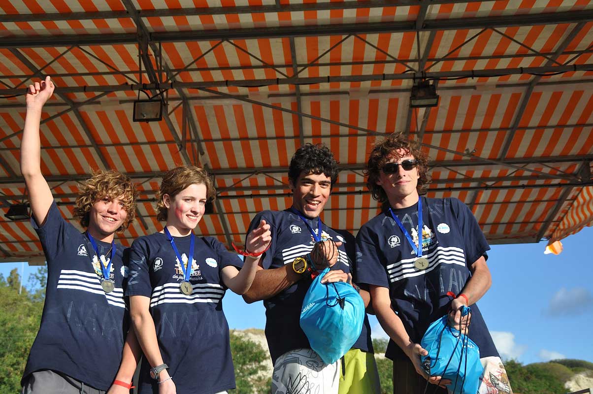 Pouembout et Poindimié stars du week-end ; le 07/04/2011 - 21:29L'équipage du lycée de Pouembout (Étienne Accarier, Hélène Le Brun, Thomas Galindo et Jordan Lloubères) a rendu hommage à Natan Llido qui aurait dû être son capitaine à l'occasion de cette 5e édition.