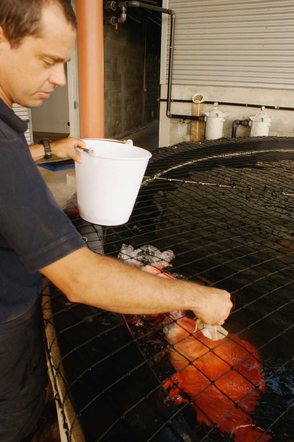 Premiers œufs pour Noël ; le 12/28/2012 - 11:21Les géniteurs sont nourris avec des calamars et des sardines, complétés par un apport en vitamines.Photo Clémence Losserand