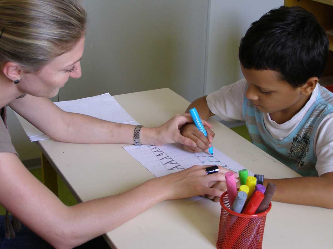 Premiers pas de l'école Moi Je Ted ; le 04/05/2012 - 01:58Après un mois, l'équipe de l'école Moi Je Ted récolte les premiers fruits de son travail. Plus posés, les cinq enfants ont offert des signes de leur capacité d'apprentissage.