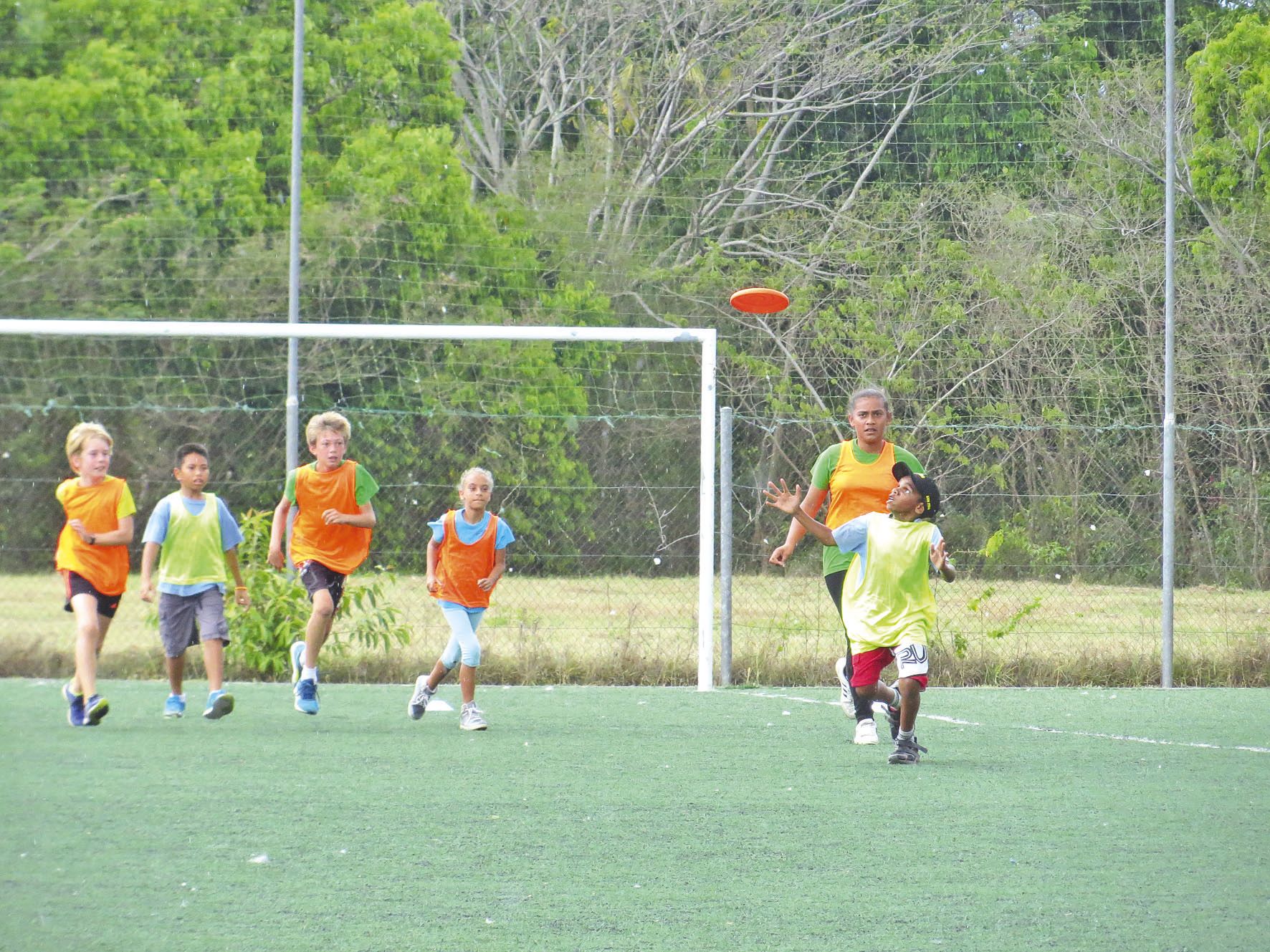 3 > Le tournoi s’est déroulé toute la matinée sur le terrain synthétique attenant au stade Yoshida. Chaque match de rugby et d’ultimate durait dix minutes, avec une mi-temps d’une minute. Les équipes étaient mixtes et composées de sept joueurs. Pour remporter le précieux point en match d’ultimate, les joueurs doivent faire « atterrir » le disque dans les bras d’un équipier situé en zone adverse. Le placement sur le terrain revêt donc une grande importance.
