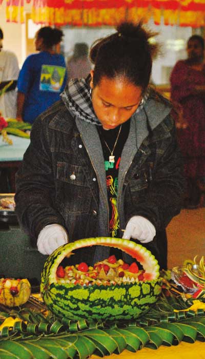 La salade de fruits « arc-en-ciel » des internes de Koné (à droite) a remporté le concours, tandis que les jeunes de Ouégoa ont terminé deuxième, avec leur dessert « mystère ».La salade de fruits « arc-en-ciel » des internes de Koné (photo 2) a remporté le concours, tandis que les jeunes de Ouégoa ont terminé deuxième, avec leur dessert « mystère ».