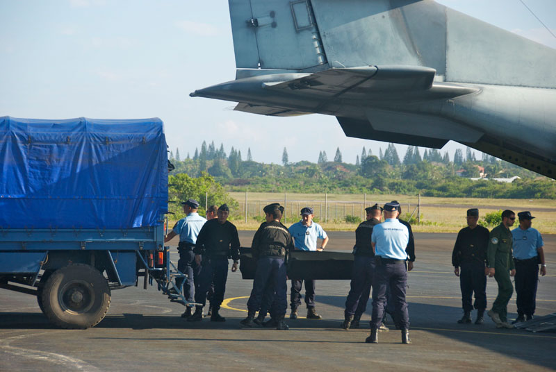 Retour à Maré ; le 08/13/2011 - 01:24Hier matin, les corps de trois des quatre jeunes victimes sont arrivées sur l'île par avion militaire.Photo : C.L.
