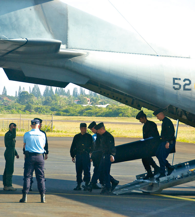 Retour à Maré ; le 08/13/2011 - 01:25Hier matin, les corps de trois des quatre jeunes victimes sont arrivées sur l'île par avion militaire.Photo : C.L.