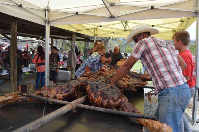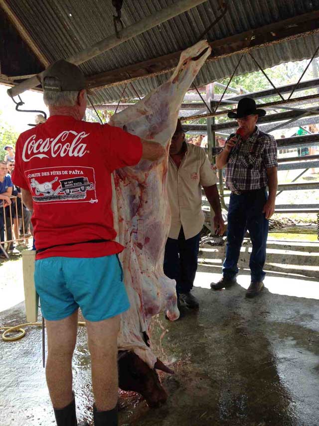 Animelles, rodéo, baignade d’un troupeau ou dépeçage d’un veau, la 23e édition de la Fête du bœuf a tenu ses promesses et attiré des milliers de visiteurs, dimanche 12 novembre, à Gadji. Pour la première fois, les amateurs de viande ont pu acheter sur place. Photos Gaëlle Grès. À lire aussi : « De beaux morceaux à la Fête du bœuf »