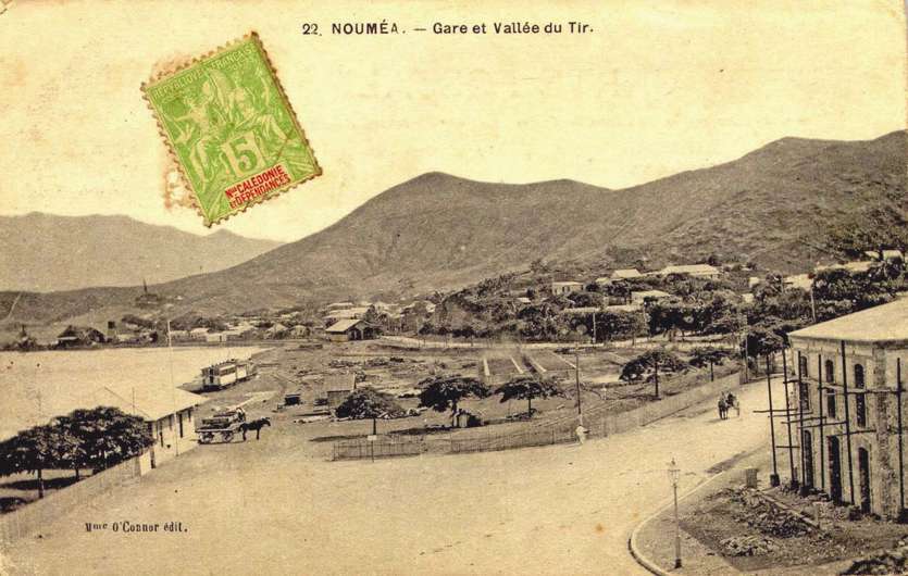 Cette carte postale de la collection O’Connor, fonds du musée de la Ville, montre la gare d’où le train prenait son départ à Nouméa. Elle est visible sur la gauche et l’hôtel du Pacifique apparaît à droite. Le terrain au milieu accueille aujourd’hui la direction de l’Equipement. A peu près l’endroit où l’association Trains de Nouvelle-Calédonie vient d’exposer la locomotive (de mine) Higginson.