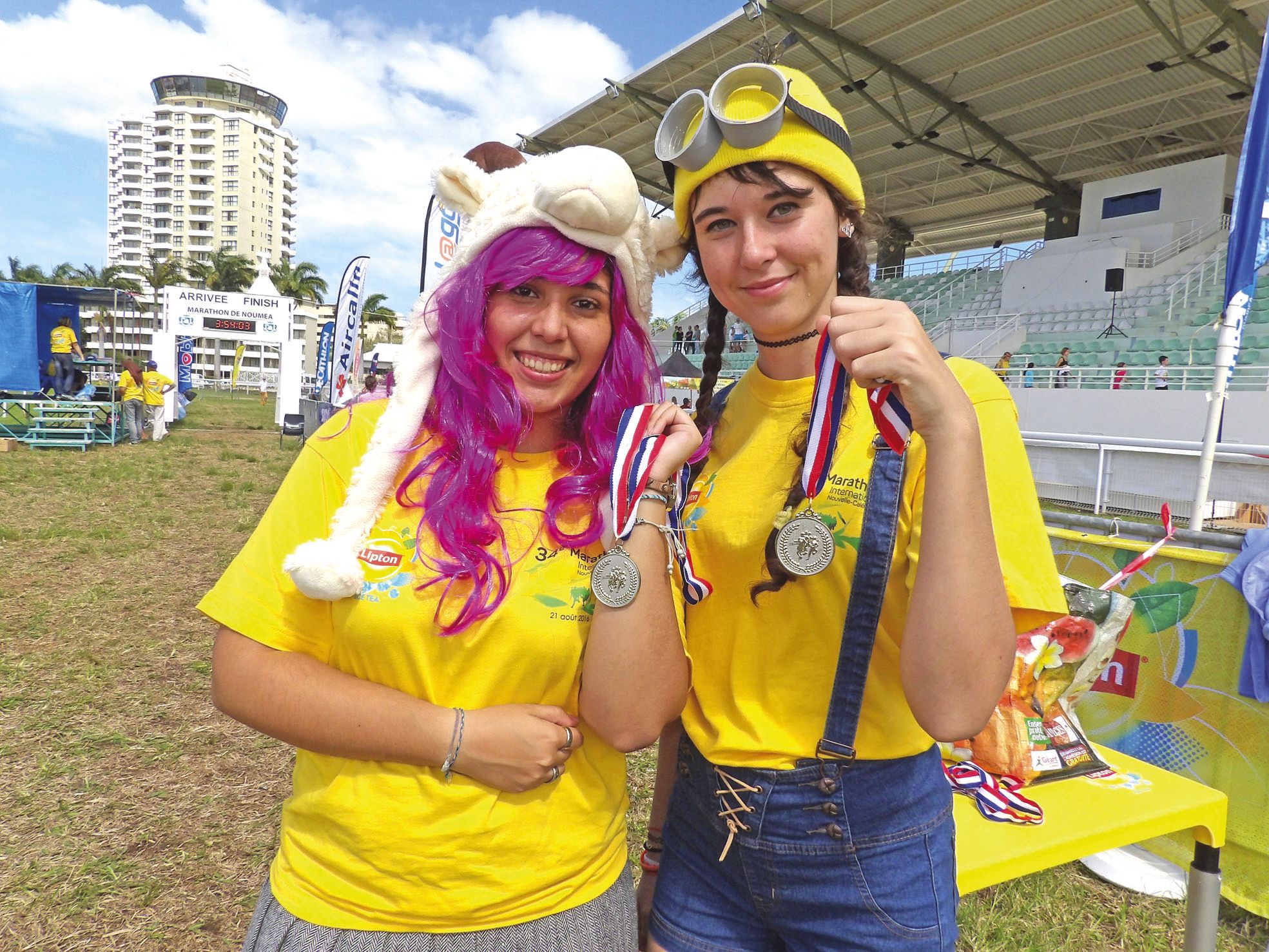 3 > L’arrivée, comme pour les grands, s’est faite en passant sous l’horloge. Léa et Morgane, installées juste derrière la ligne d’arrivée, ont félicité tous les concurrents, avant de distribuer médailles et sourires. Le premier de chaque course a reçu une coupe.