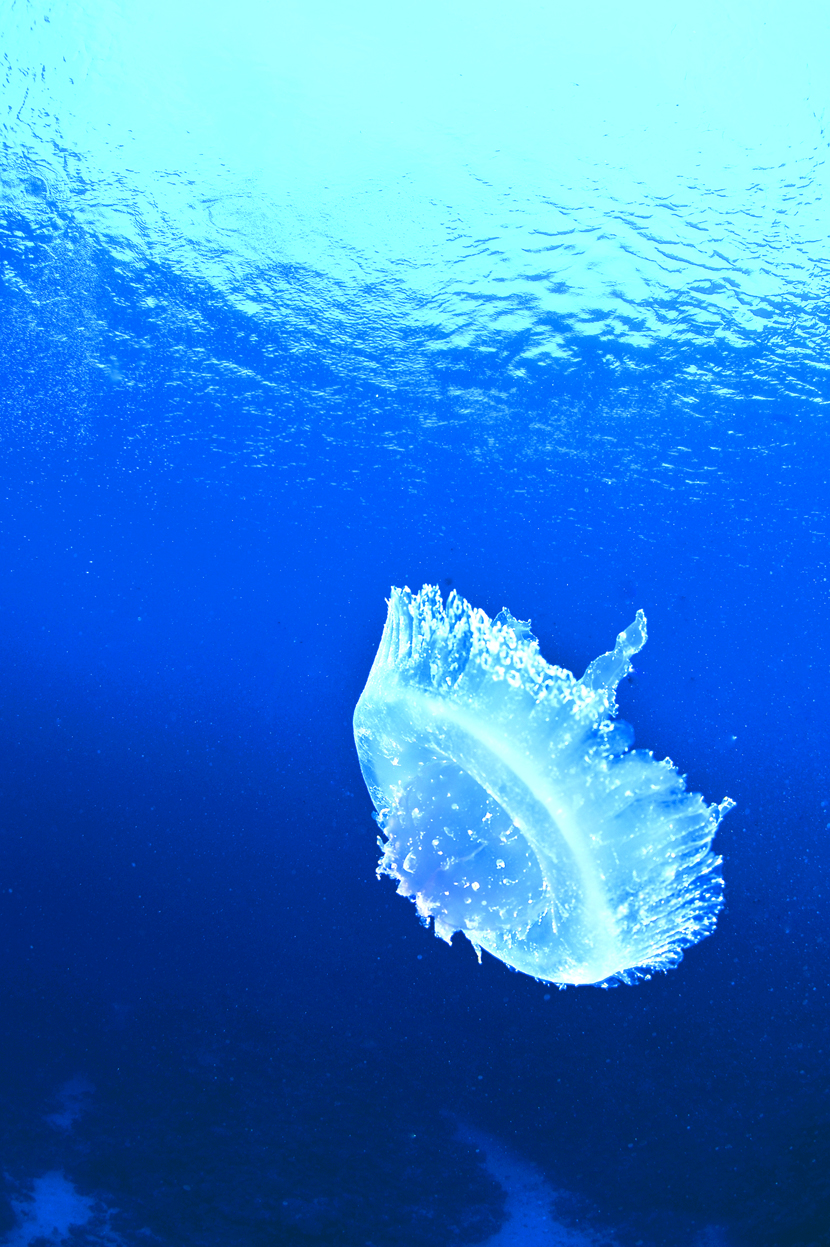 4 > Parfois, la photographie sous-marine prend des airs aériens. Comme avec cette Aequorea australis capturée entre deux eaux par l’objectif de Bastien Preuss. Président de la CAV-NC et champion de Nouvelle-Calédonie 2015, il s’envolera à la fin du mois pour représenter la Calédonie aux championnats nationaux de Boulouris, dans le Var.