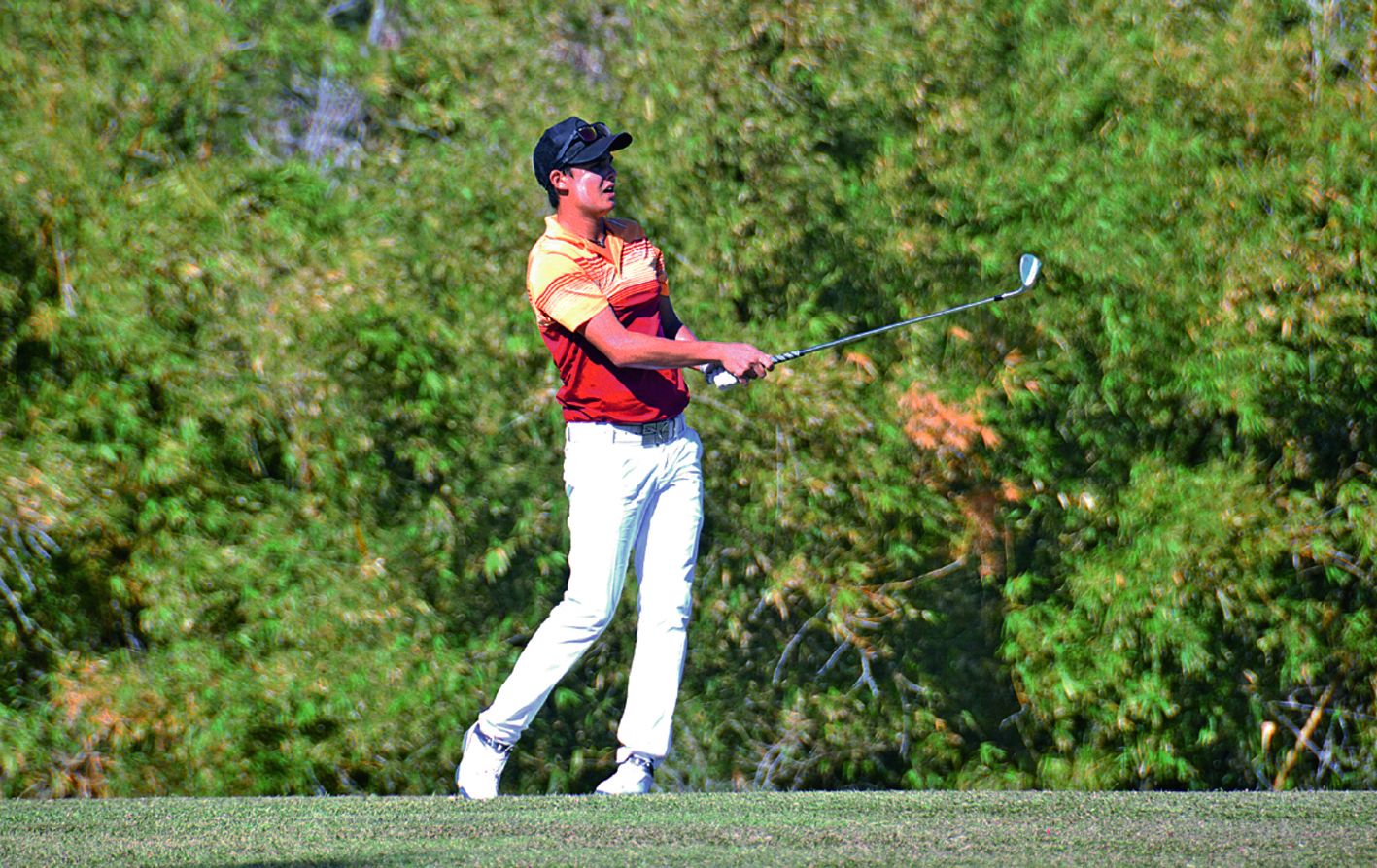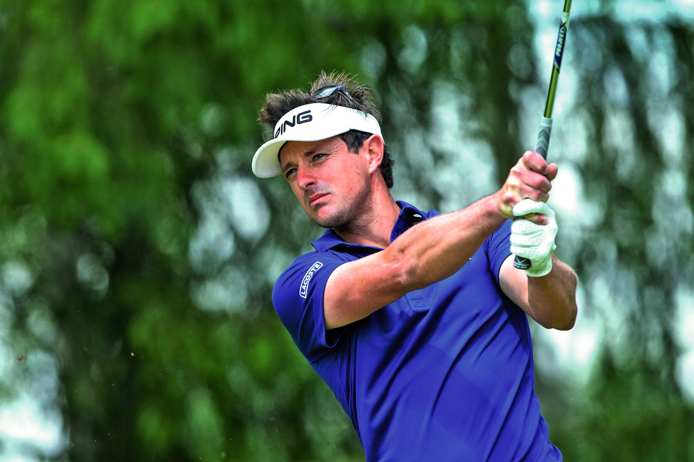Pierre-Henri Soero et ses deux facettes : en pleine compétition de crossfit à gauche et sur les greens floridiens à droite, au côté du golfeur fidjien Vijay Singh, en marge du dernier Honda Classic. Photos D.R.