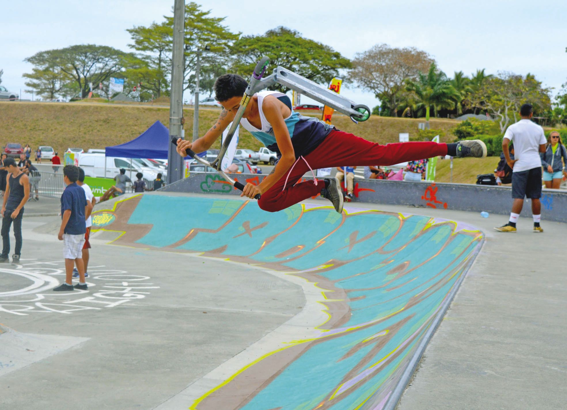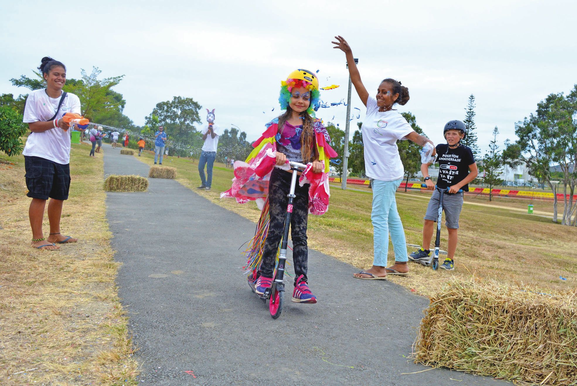 La nouveauté de l’édition était pour le moins fantaisiste. Et haute en couleur ! Emparez-vous de votre plus beau déguisement, armez-vous de votre trottinette, faites-vous asperger d’eau et de cotillons, puis terminez le parcours par une figure et un sourire au jury. Dans le jargon, on appelle cela : la big up race ! Les volontaires se sont bousculés au portillon.