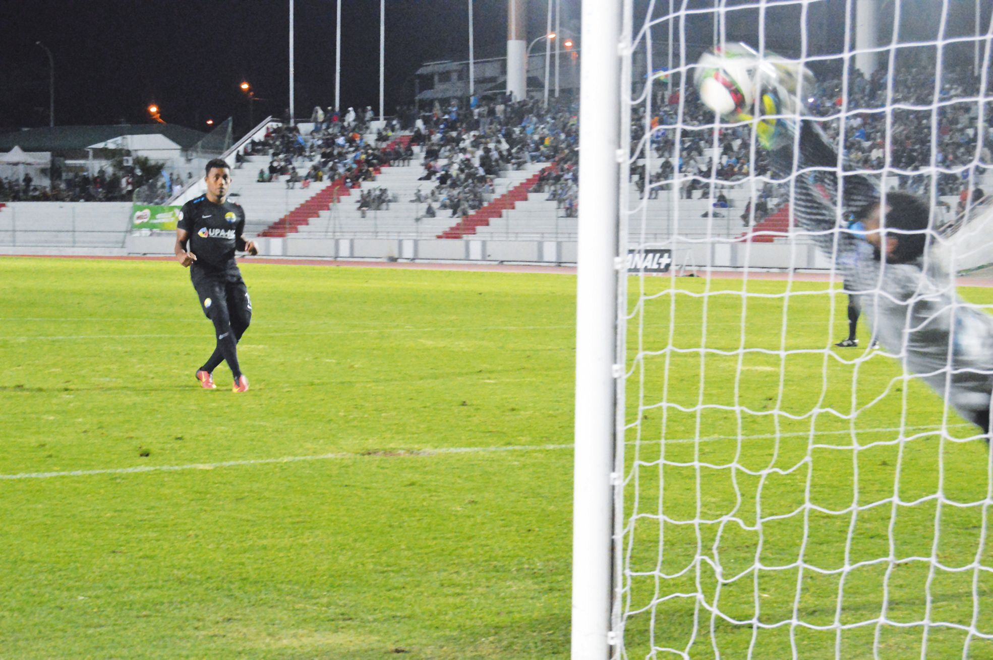 Après avoir réalisé comme souvent une partie énorme dans son rôle de défenseur relanceur, Roy Kayara ouvre la séance des tirs aux buts. Mais Steve Ixoee parvient à sortir le ballon pourtant bien placé. Hienghène ne s’en remettra pas.