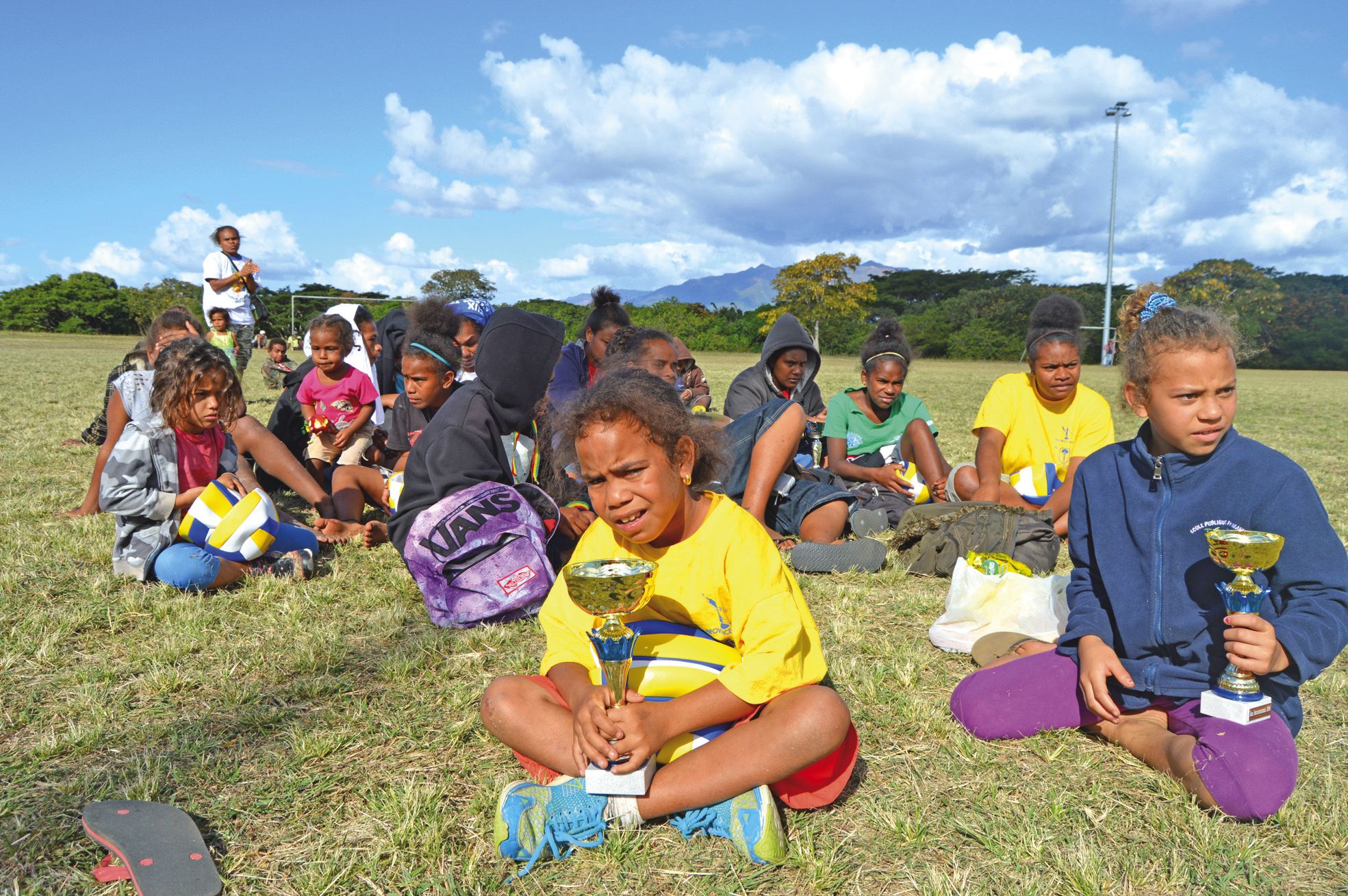 Les volleyeuses de Koné sont fières de leurs coupes ! Chaque équipe a reçu un trophée et chaque joueur, un ballon.