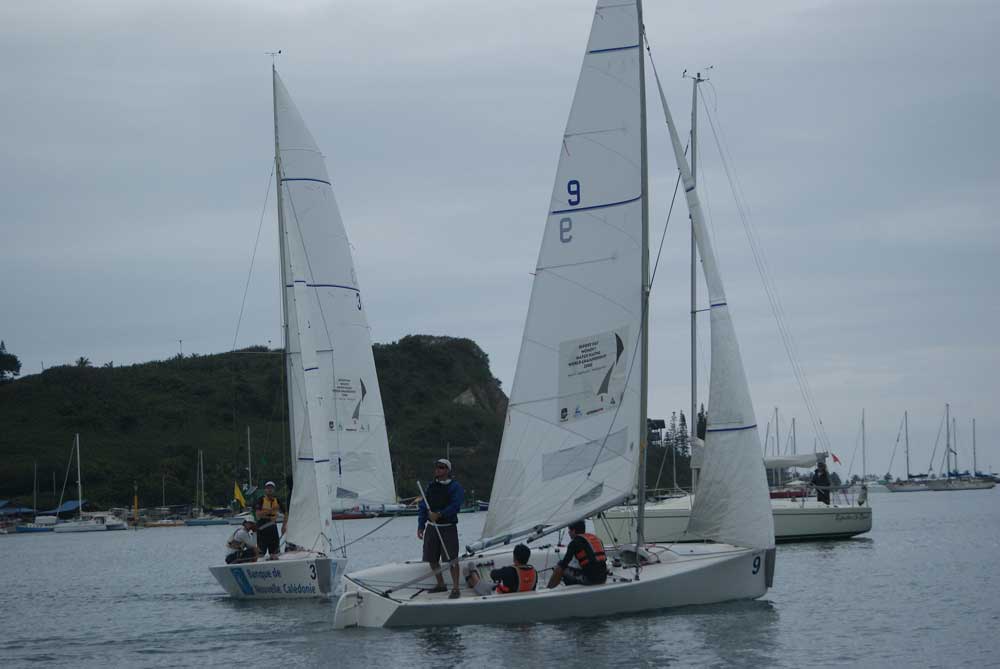 voile ; le 08/21/2011 - 20:48Tugdual Pirou (à la barre), Titouan Piller et Pierre-Yves Pennec ont remporté le premier championnat de Calédonie de match-race, hier sur le plan d'eau du Quai Ferry.