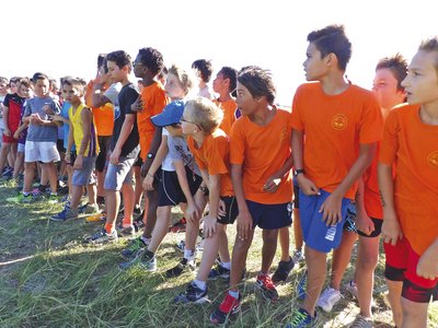 Sur la ligne de départ, les benjamins garçons attendent le coup de sifflet pour se lancer à l'assaut des 3 000 mètres. Chaque place a été âprement disputée.