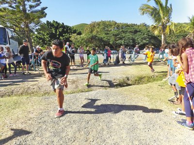 Les garçons dans l'effort, avec le numéro de la licence UNSS inscrit sur le bras. Pas de sélection pour cette épreuve d'envergure, juste une inscription sur la base du volontariat. La grande finale territoriale est prévue le 30 juillet à Bourail.