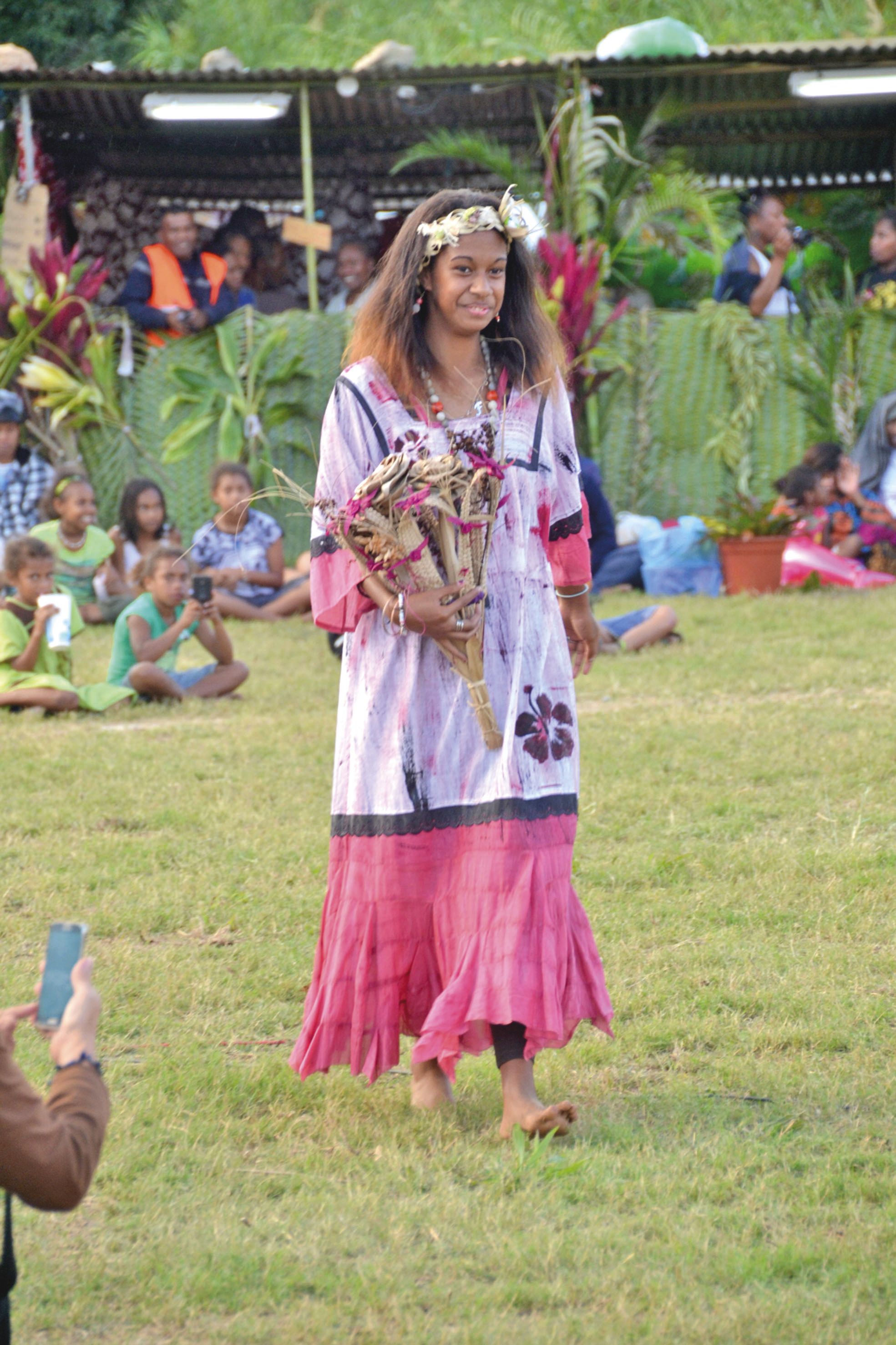 Samedi, en fin d’après-midi, le public s’est rapproché de la scène pour assister à un défilé en robe mission, dont certains modèles ont été créés par Marie-Claire Kataya, de Touho.