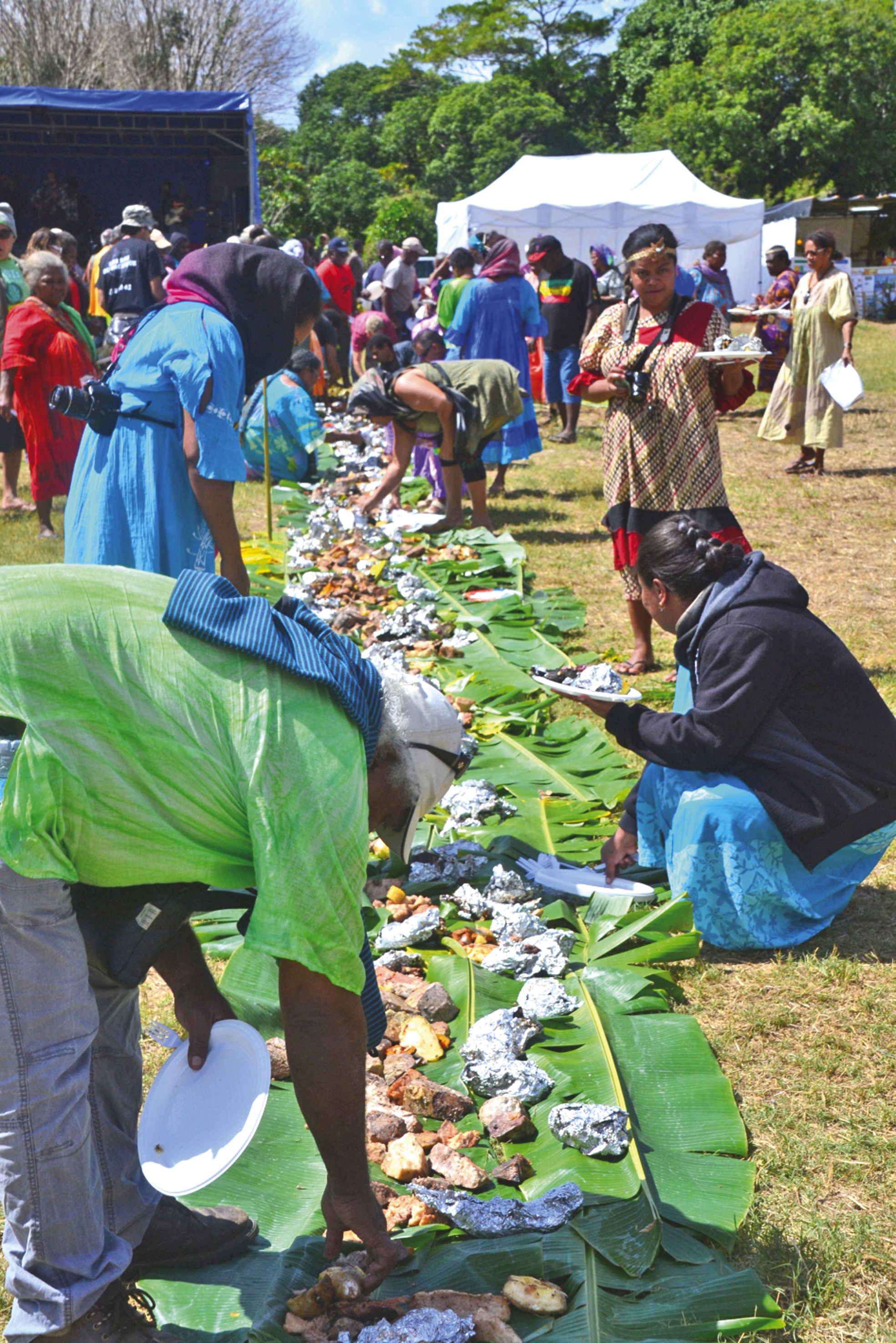 Pour clôturer ces deux jours, Touho, Iaai et Malampa (Vanuatu) ont préparé un four commun où chacun a cuit un bougna préparé à sa façon, avec le taro en ingrédient principal.