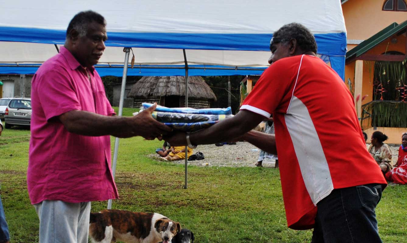 Un nouveau pasteur à Paola 1 ; le 01/30/2012 - 19:29Le pasteur Raymond Trocas, avec son petit-fils dans les bras et son épouse à sa droite, est entouré (à sa gauche) par le grand chef du district de Poye, Pascal Bouillant, et les chefs coutumiers représentant les différentes tribus de la province Nord. Cér