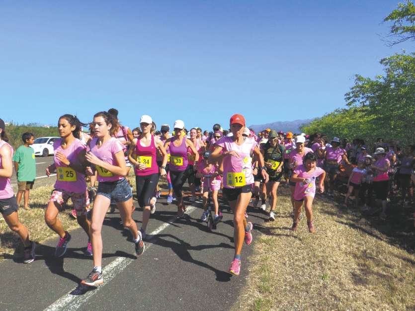 La JSP espérait dépasser les cent inscriptions pour cette édition 2016. Ce sont finalement 165 filles et femmes qui se sont échauffées devant l’Hôtel de province avant de s’élancer. Les départs de la course, puis de la marche de 4 km ont été donnés par Robert Courtot, le maire de Pouembout.