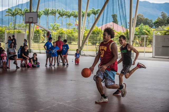 La générosité de ces joueurs ne fait plus de doute. Le Basket club de Païta organisait pour la deuxième fois un tournoi caritatif au profit de l’association Marie pour la vie, samedi 5 août, à l’Arène du Sud. Les 100 000 francs levés participeront au financement de billets d’avion pour les sœurs du petit Owen, 8 ans, hospitalisé à Sydney. Photos Marceau Goulon