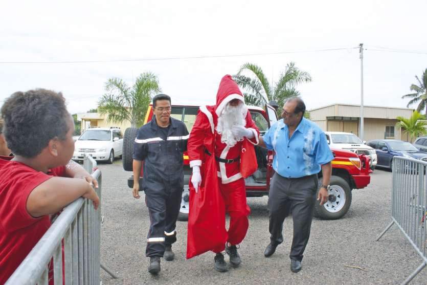C’est à bord du véhicule de commandement des pompiers du SIVM Nord, toutes sirènes hurlantes, que le père Noël est arrivé à Koumac samedi en fin de matinée. C’est monsieur le maire en personne qui l’a accueilli sous les applaudissements des enfants. Textes et photos : Jean-Marc Truvan