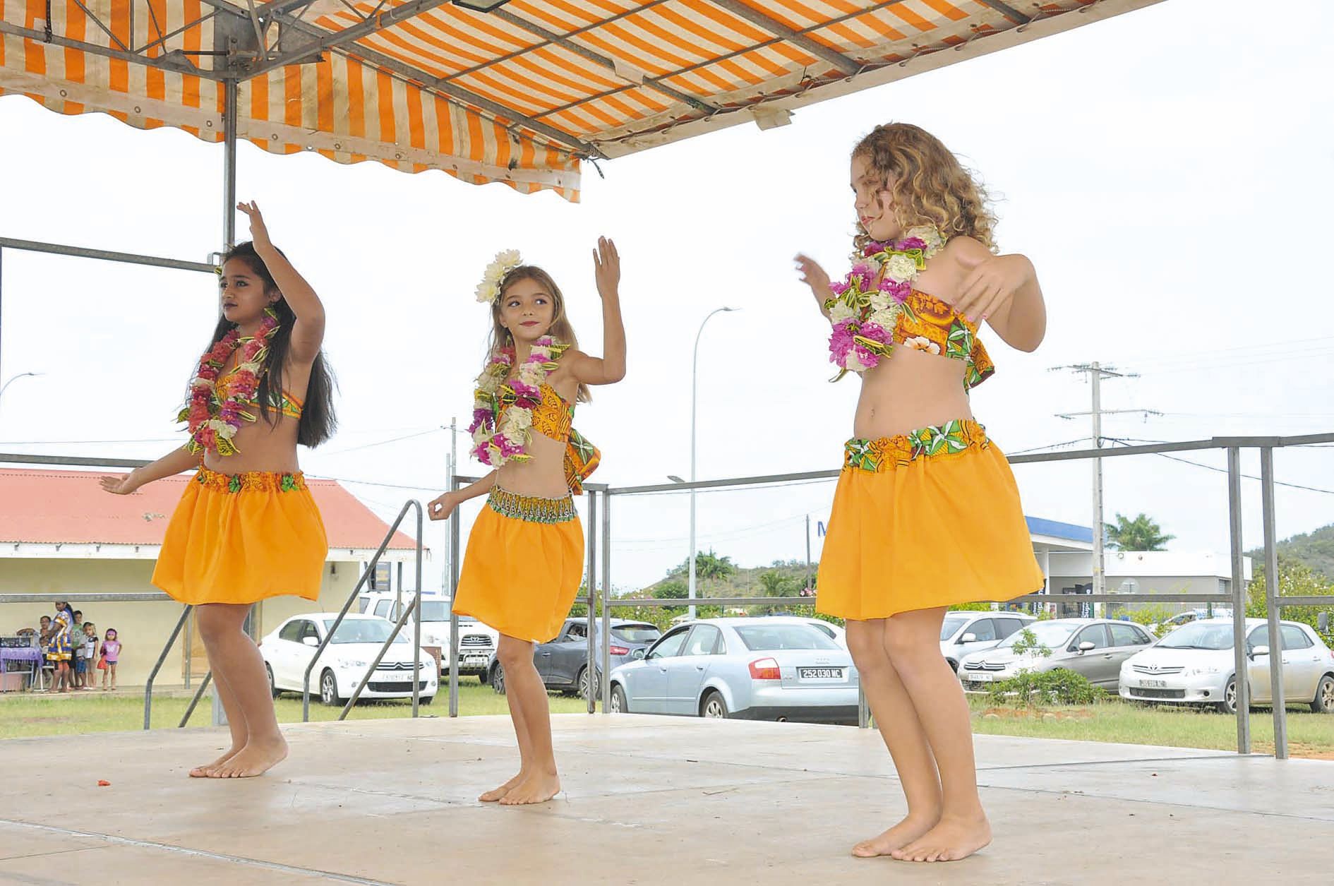 2 > Trois fillettes fréquentant les cours de catéchisme le mercredi après-midi se sont produites sur scène pour interpréter des danses tahitiennes et modernes. Un spectacle très applaudi par le public.