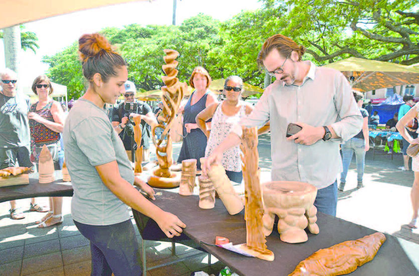 Quatre-vingt-quinze artisans ont installé leur stand, hier, sur la place des Cocotiers. Parmi eux, la famille de sculpteurs Tiaou, originaire d’Ouvéa, dont les oeuvres ont impressionné les visiteurs.