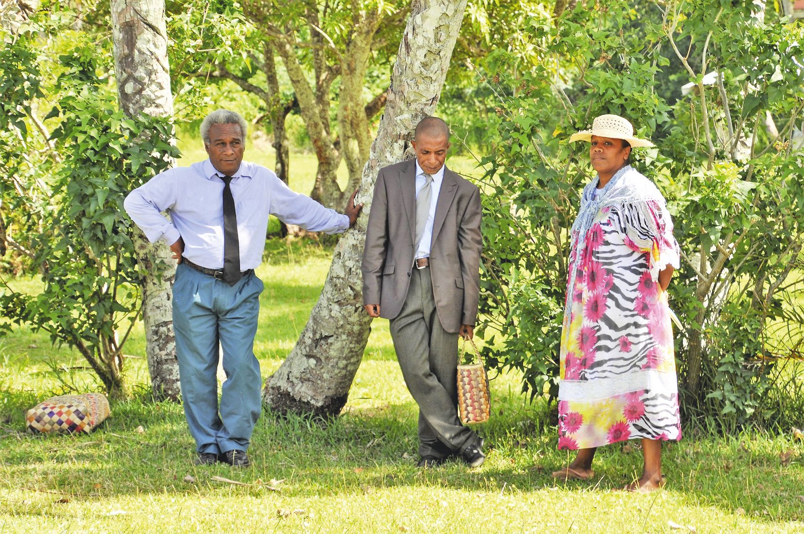 3 > A l’extérieur, le président du conseil régional de Nengone, le pasteur Kawine Wadrawane, accompagne Chanel et Rose Humuni dans leur attente tendue.