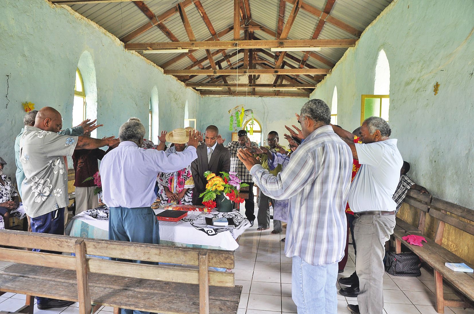 5 > De nombreux amis et famille ont fait le déplacement pour assister à sa consécration. « Elle était acquise mais de tous les voir ici, avec mes parents, m’a touché au cœur ». L’émotion du jeune pasteur a gagné toute l’assemblée présente dans le temple et marque combien ce moment est important dans la vie des paroissiens de Nengone. « Cette cérémonie est l’aboutissement d’une première étape, mais le travail commence maintenant ».