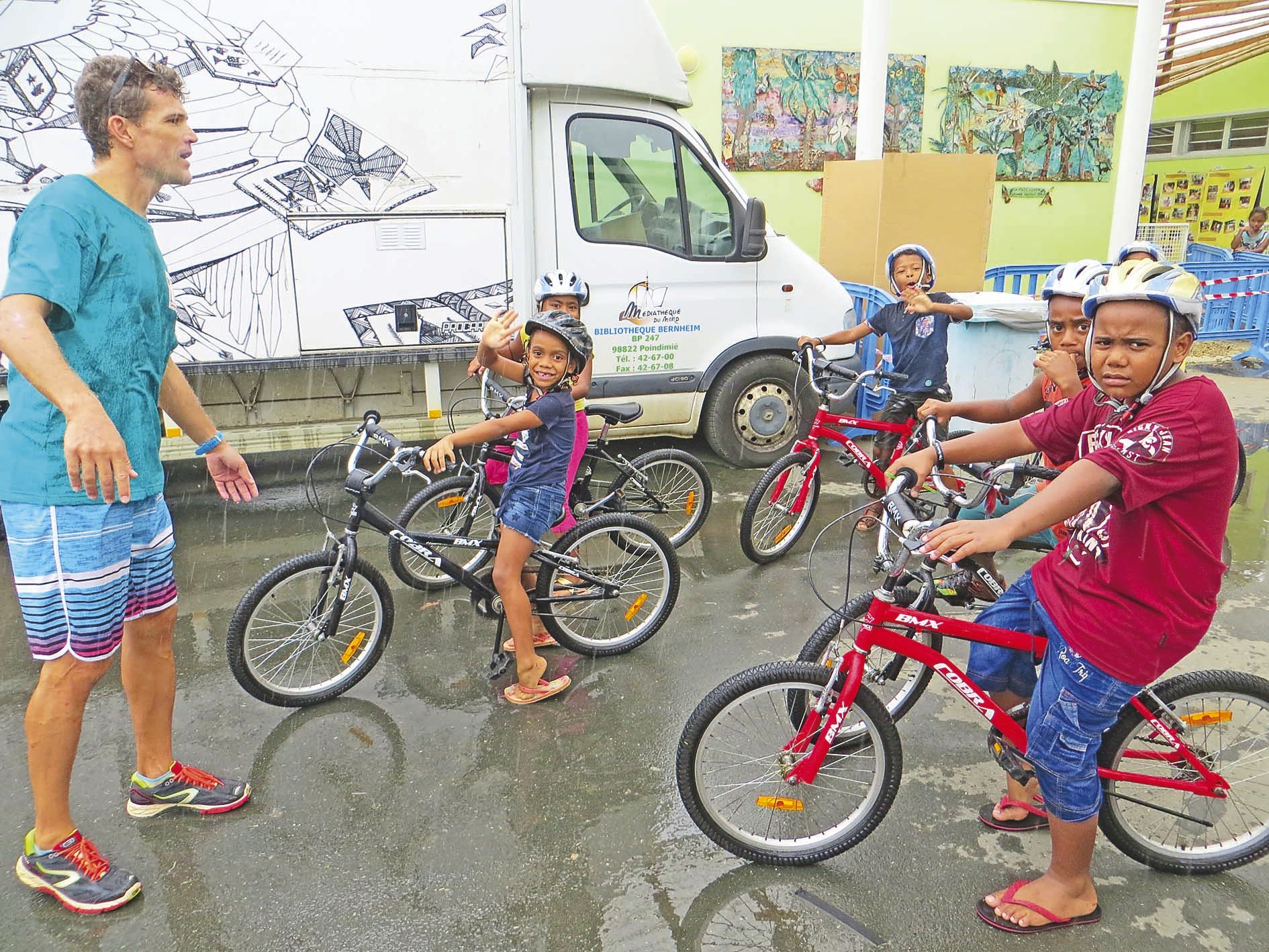 2 > Sous une pluie battante, une vingtaine d’enfants se sont lancés dans un grand multiraid au sein de l’école, mêlant toutes les activités sportives proposées par le Triathlon Nord NC et le CPNSL : course à pied, speed-ball, vélo et tir à l’arc.