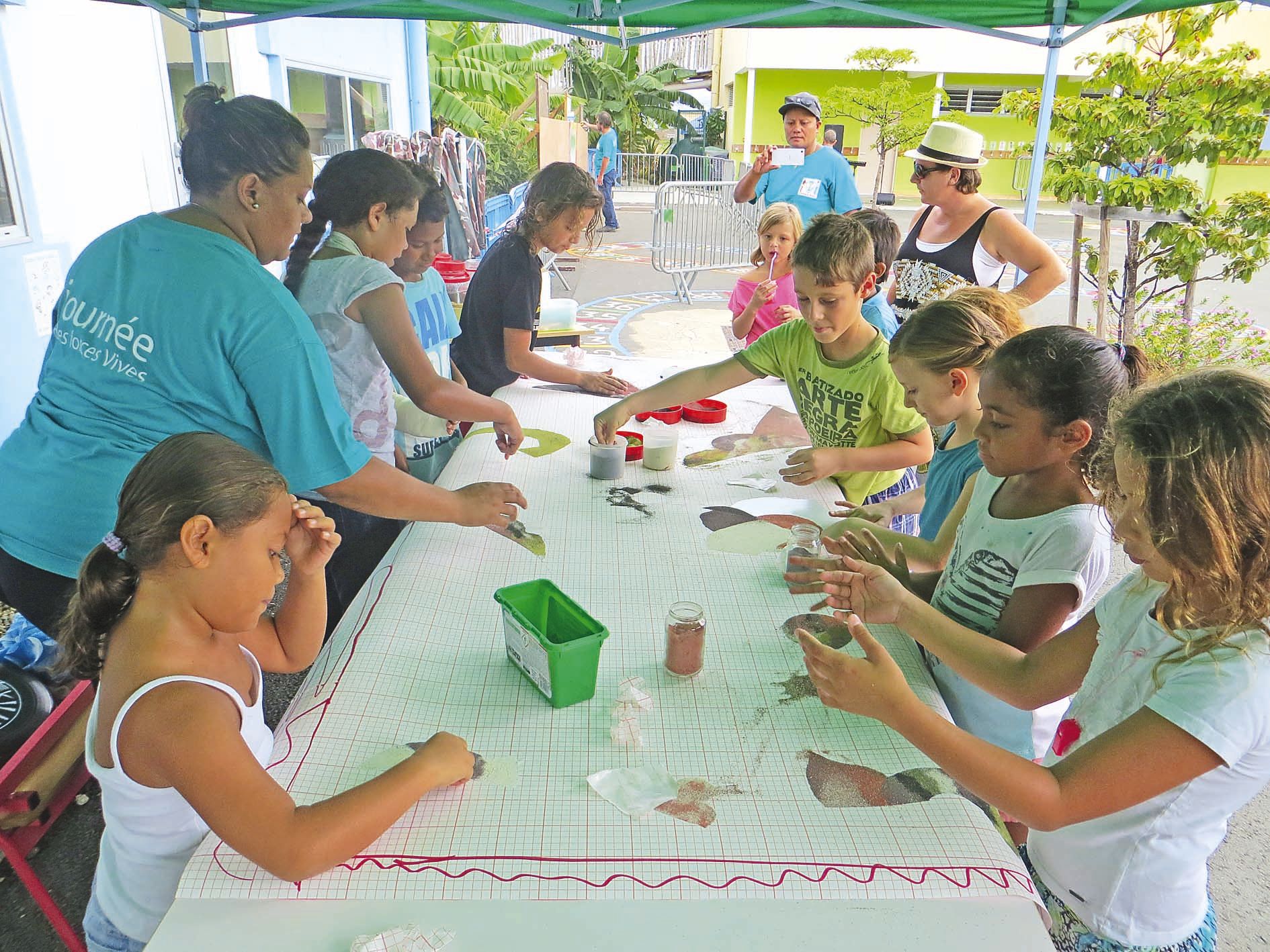 4 > L’association Evasion, connue pour ses centres de loisirs, proposait deux sortes d’activités : sportive, avec de l’initiation à l’ultimate, et manuelle avec la création de tableaux de sables, encadrée par Rose-Marie : « Une technique accessible aux tout petits comme aux grands ! »