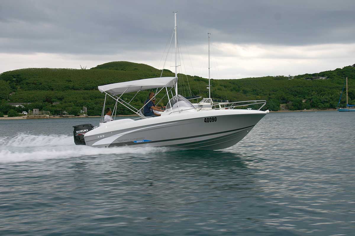Avec sa livrée gris perle, le Flyer a fière allure sur l'eau. L'ensemble est bien équilibré avec sa grande console en position centrale.